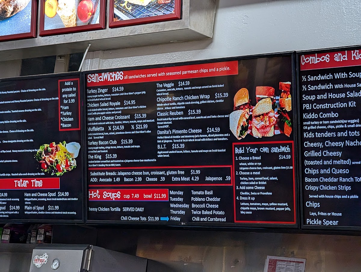 Customer reviews rave about the quality of the food, with mentions of favorites like the chicken salad sandwich, Reuben, and a variety of ice cream flavors. The baked goods, including pecan pie bars and peach cobbler, are also highly recommended.